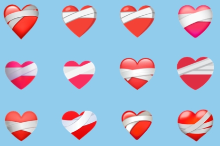 Aquí tienes el corazón vendado y otros emojis que comparten temática de amor, dolor y recuperación:
